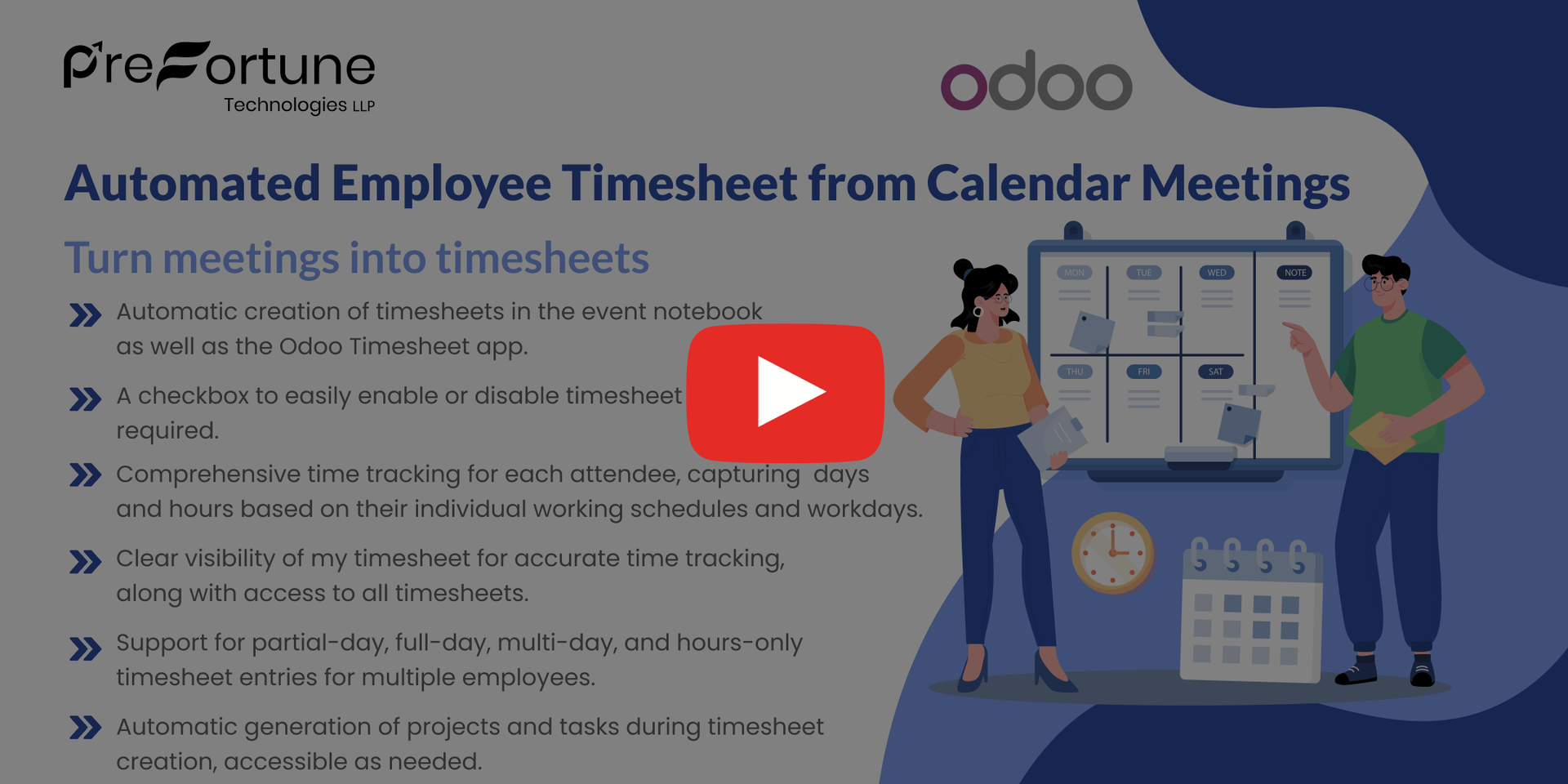 Our all-inclusive Odoo – Automated Employee Timesheet from Calendar Meetings module is designed to automatically generate employee timesheets from calendar meetings, integrating them seamlessly into both the event notebook and the Timesheet app in Odoo.