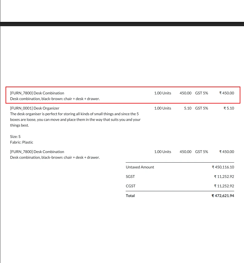 With this module, a Page Break option is added directly on order lines. You can start selected products or sections on a new page, making it easy to separate product groups or important items in your Odoo quotation or sales order PDF.