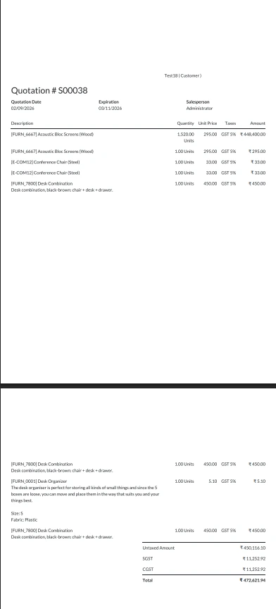 The Odoo Quotation Page Break Module allows users to control how quotation and sales order reports are displayed in PDF format. You can insert page breaks at specific points to generate professional multi-page quotation and Odoo sale order reports with better readability.