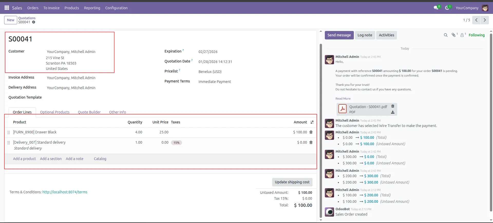 11.Open the new order (S00050) to verify the customer details and products are correct.