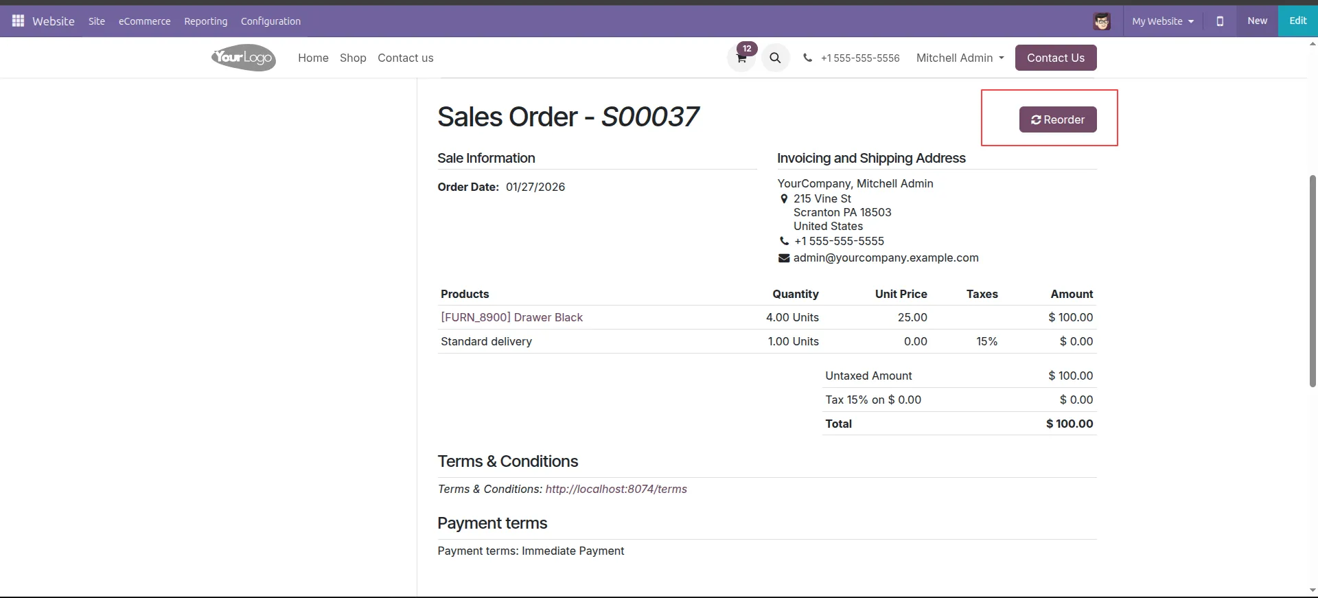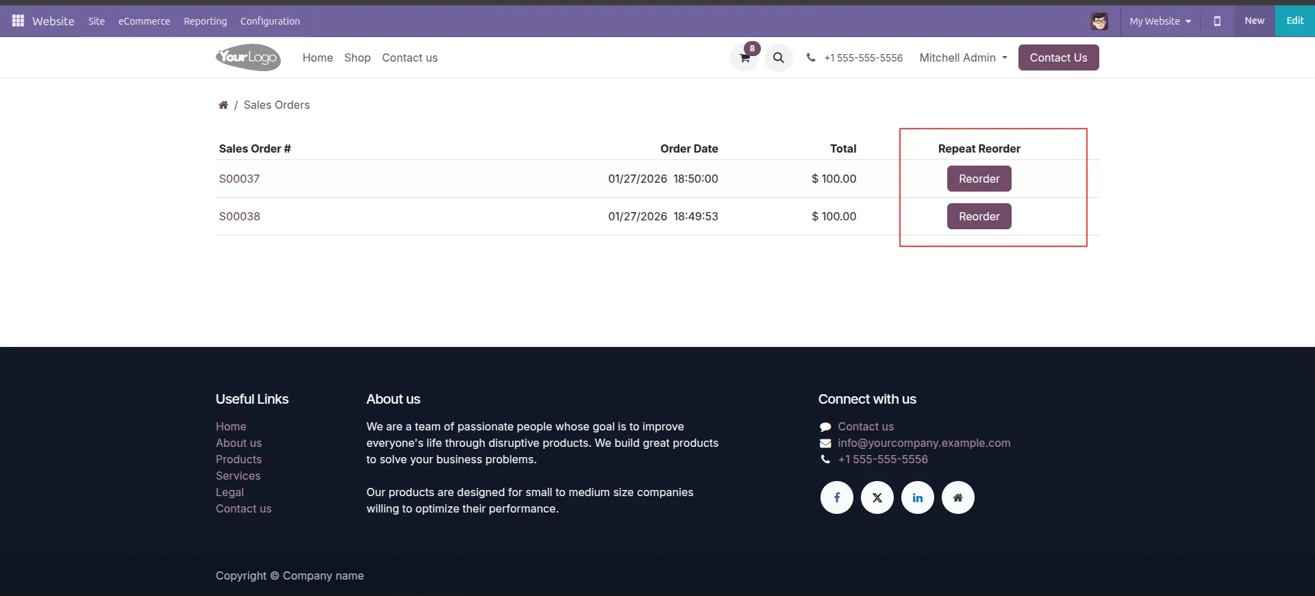 Odoo Website Re-Order Module