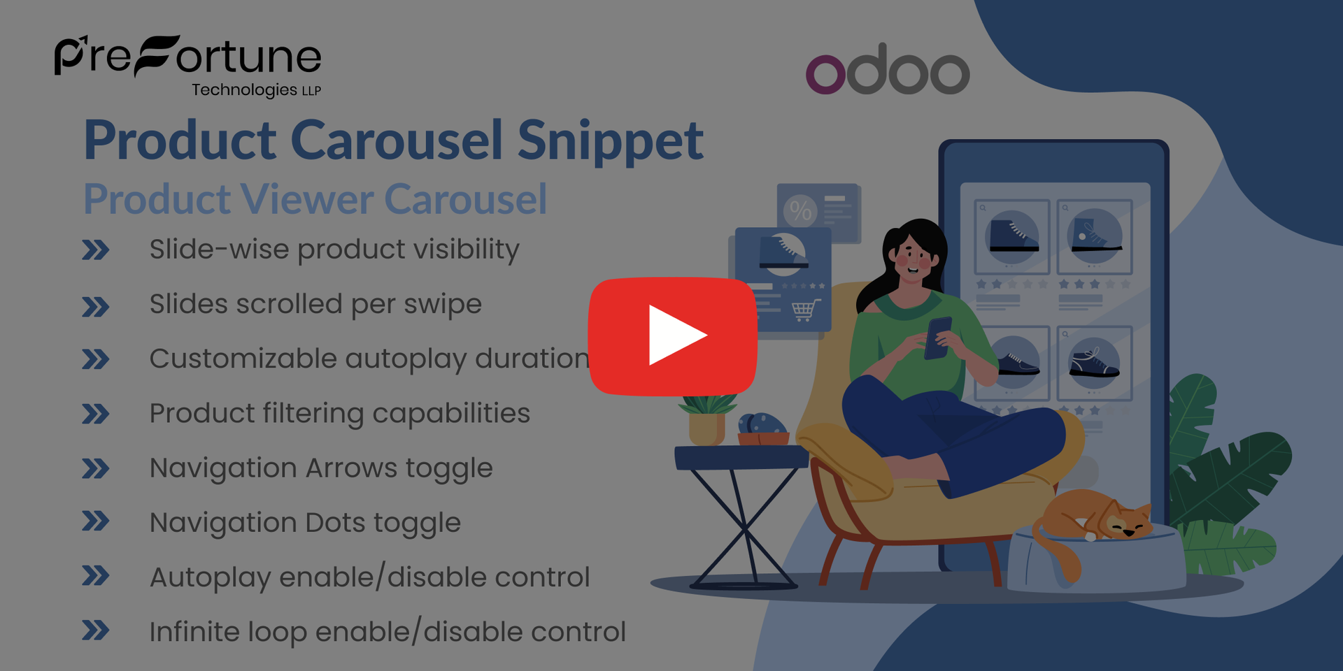 all-inclusive Odoo –Product carousel/slider in website lets users easily add a customizable product slider by dragging and dropping it in Odoo’s Website Editor. It offers control over products per slide, scrolling behavior, autoplay, navigation toggles, and product filtering. Multiple template styles and infinite loop options provide design flexibility. Fully responsive, the carousel ensures a seamless product browsing experience across all devices.